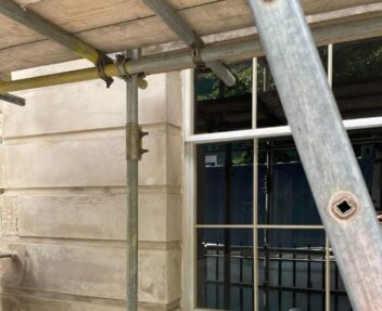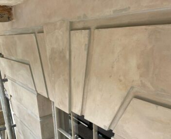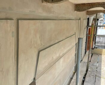 The render was applied to match the original lines, levels and architectural details of the building, ensuring the restored façade remained sympathetic to the character of the property.