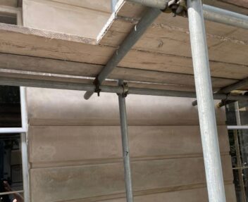 Initial investigations revealed that large areas of the existing render had become delaminated due to prolonged water ingress, which had also led to areas of underlying masonry deterioration.