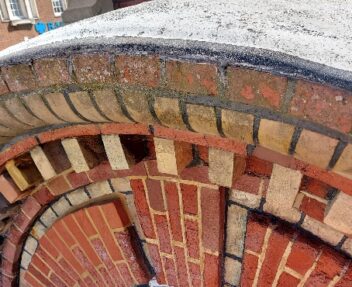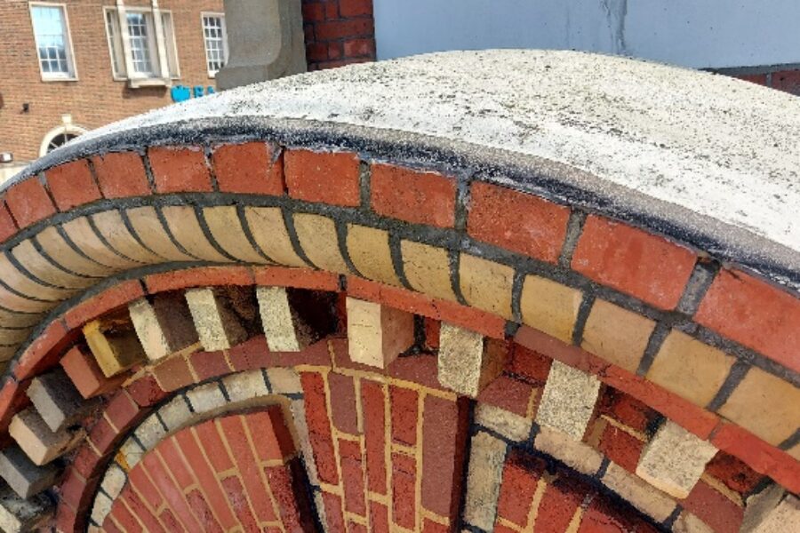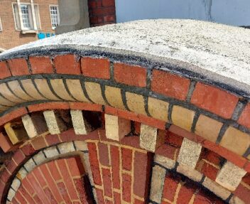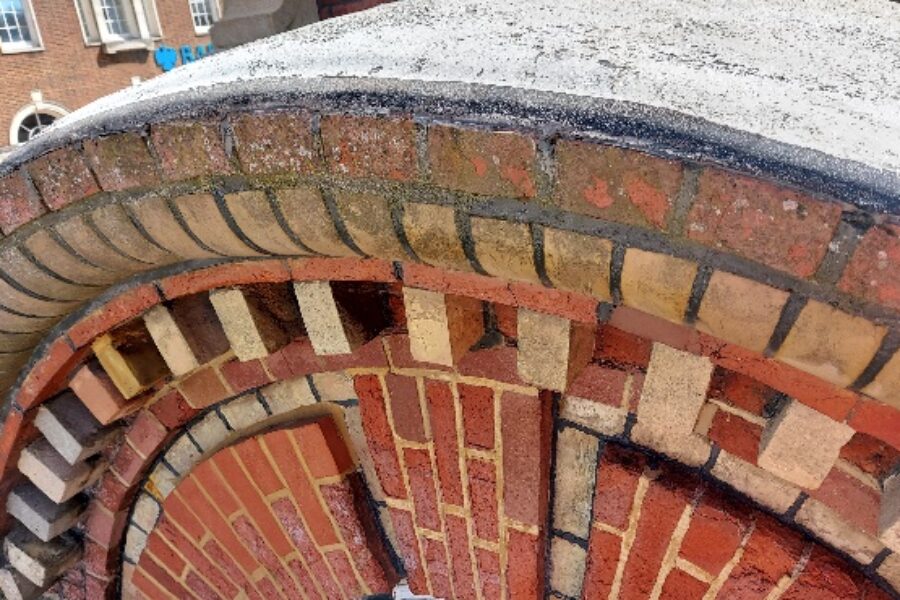 Following the assessment, the team undertook a full rake out of the existing mortar joints, removing inappropriate materials that had been used in previous repairs. The clock tower was then carefully repointed using traditional lime mortars, helping to weatherproof the structure while allowing the masonry to breathe as intended. Additional works included brick replacements, mortar repairs and refacing to moulded bricks where deterioration had occurred.